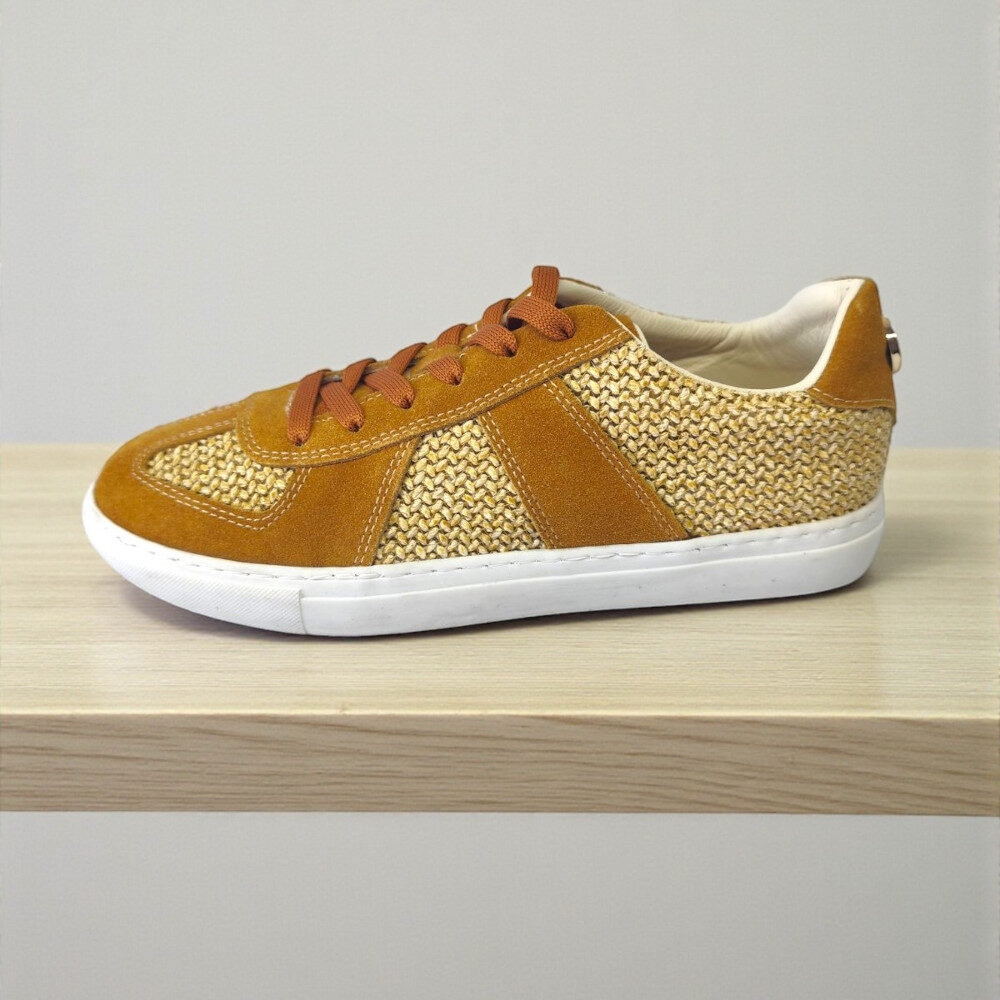 Γυναικείο sneaker με μοναδικό συνδυασμό suede λεπτομερειών και υφαντού υλικού, που χαρίζει φυσική αίσθηση και σύγχρονη εμφάνιση.